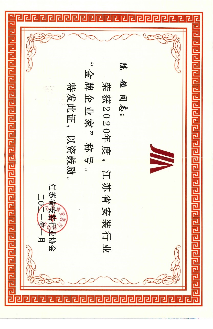 吳輝秘書長及協(xié)會各理事為榮獲2020年度安裝百強(qiáng)企業(yè)、金牌企業(yè)家和銀牌企業(yè)家的代表們頒發(fā)了牌匾和證書,其中江蘇省工業(yè)設(shè)備安裝集團(tuán)有限公司榮獲“百強(qiáng)企業(yè)”,江蘇省安總經(jīng)理陳超榮獲“金牌企業(yè)家”。