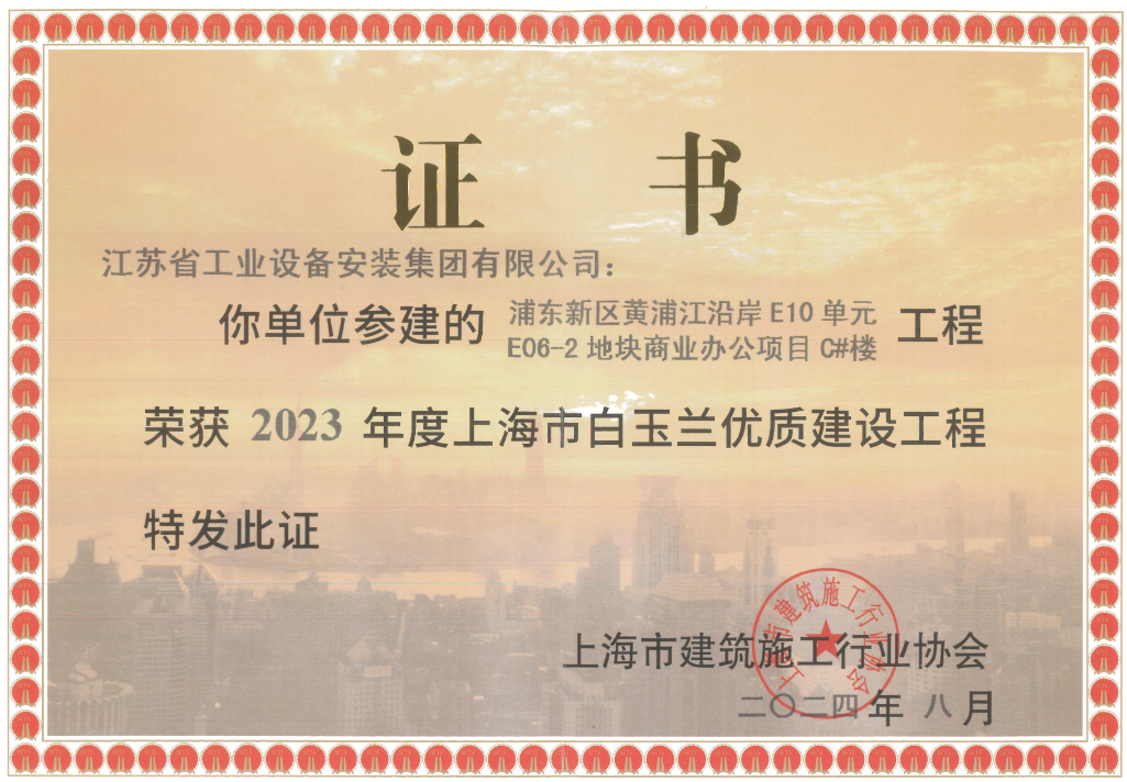 日前,上海市建筑施工行業(yè)協(xié)會(huì)傳來喜訊,由我司上海分公司承建的浦東新區(qū)黃浦江沿岸E10單元E06-2地塊商業(yè)辦公項(xiàng)目C#樓榮膺“2023年度上海市白玉蘭優(yōu)質(zhì)建設(shè)工程”。這一榮譽(yù)是對(duì)我司在建筑工程領(lǐng)域?qū)I(yè)能力與卓越品質(zhì)的高度認(rèn)可。