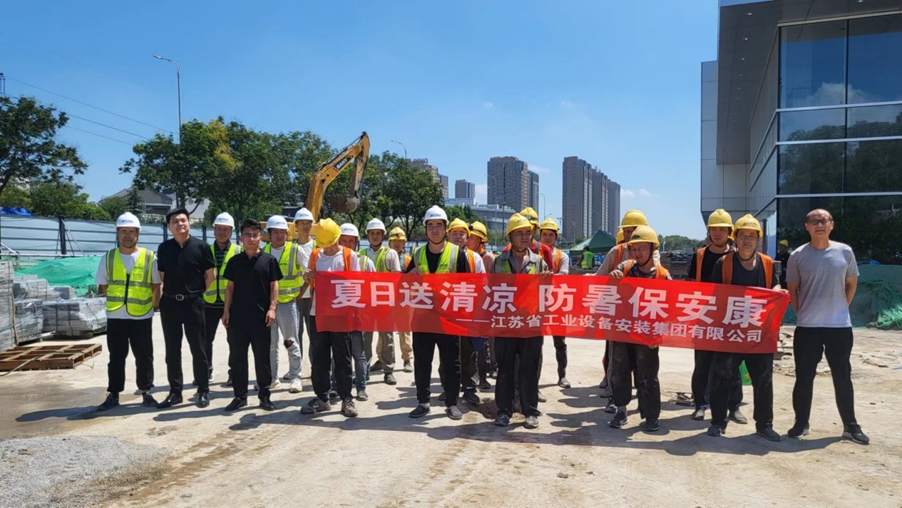 日前,省安集團工會主席饒敦峰、蘇州分公司工會主席岑金晶赴省安濟寧萬象匯機電綜合安裝工程項目現(xiàn)場進行高溫慰問。