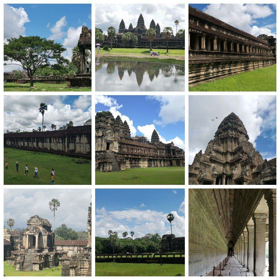 15日上午游覽了世界七大奇跡之一小吳哥窟,也是柬埔寨之旅最精華部分。吳哥窟始建于802年,距今已有1200多年歷史??偨ㄖ菏怯缮皫r石和石灰?guī)r建成,是高棉吳哥王朝全盛時(shí)期所遺留下來的不朽宗教建筑,全城雕刻之精美,有「雕刻出來的王城」的美譽(yù)。穿梭在長(zhǎng)長(zhǎng)的回廊之中,靈魂仿佛穿越回到1000多年前高棉吳哥王朝。