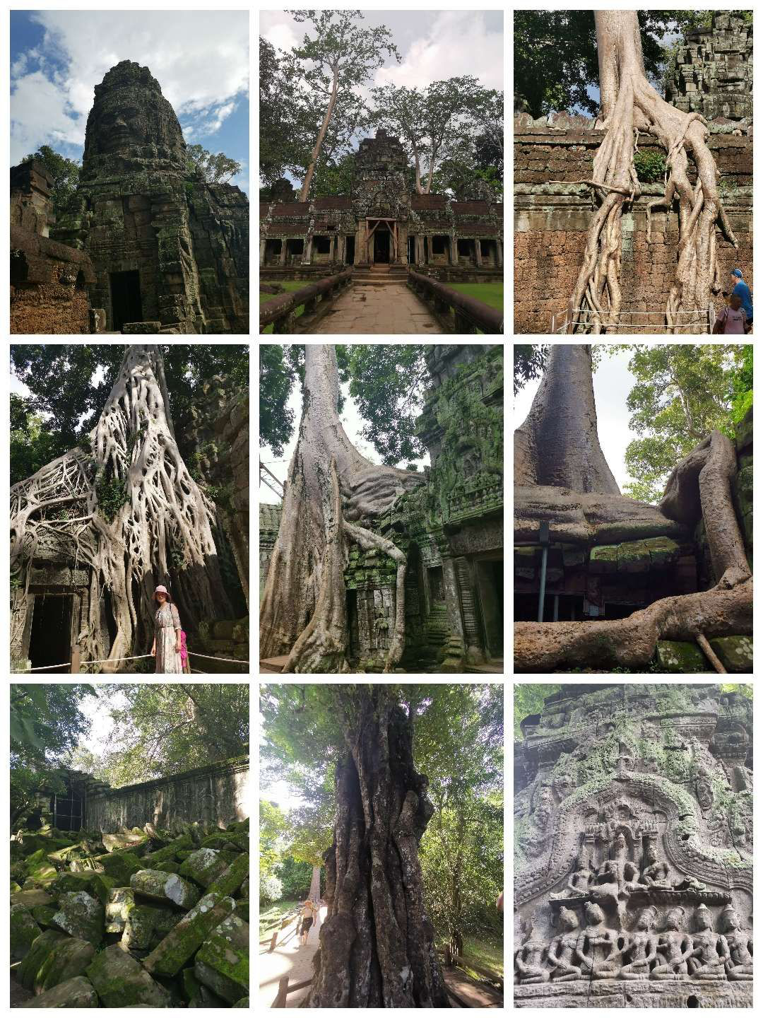 下午游覽了塔普倫寺,該寺廟建于12世紀(jì)末,尊奉婆羅門教及佛教,有巨大的樹木盤結(jié)在圍墻廟門口,蔚為奇觀;百年老樹纏繞著千年奇石,彷佛愛恨糾纏般的浪漫。但寺廟維護(hù)得不好,很多地方損毀嚴(yán)重。圖四是巜古墓麗影》的拍攝地,網(wǎng)紅打卡地。